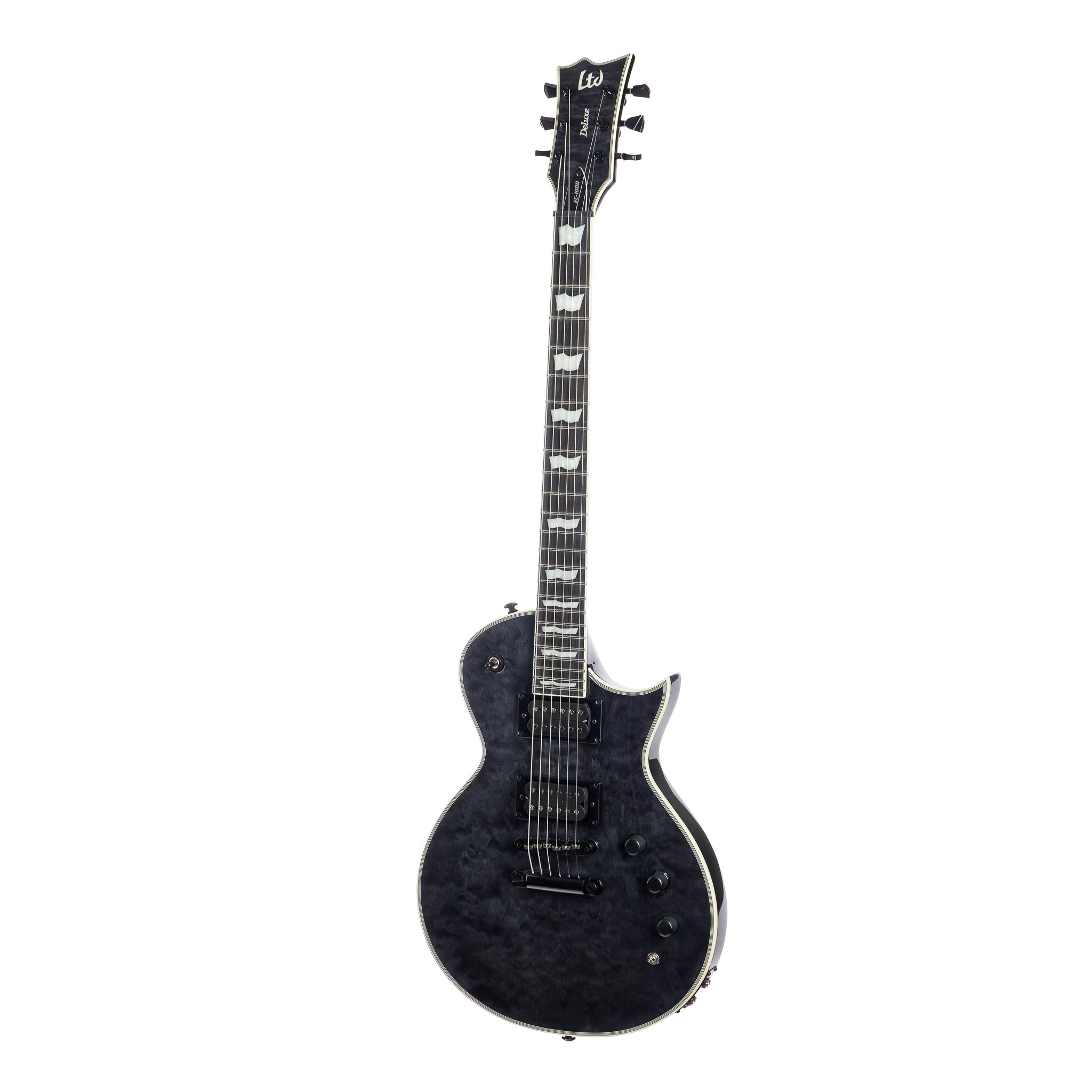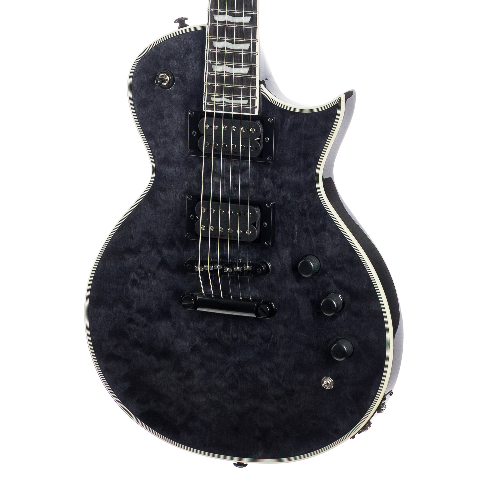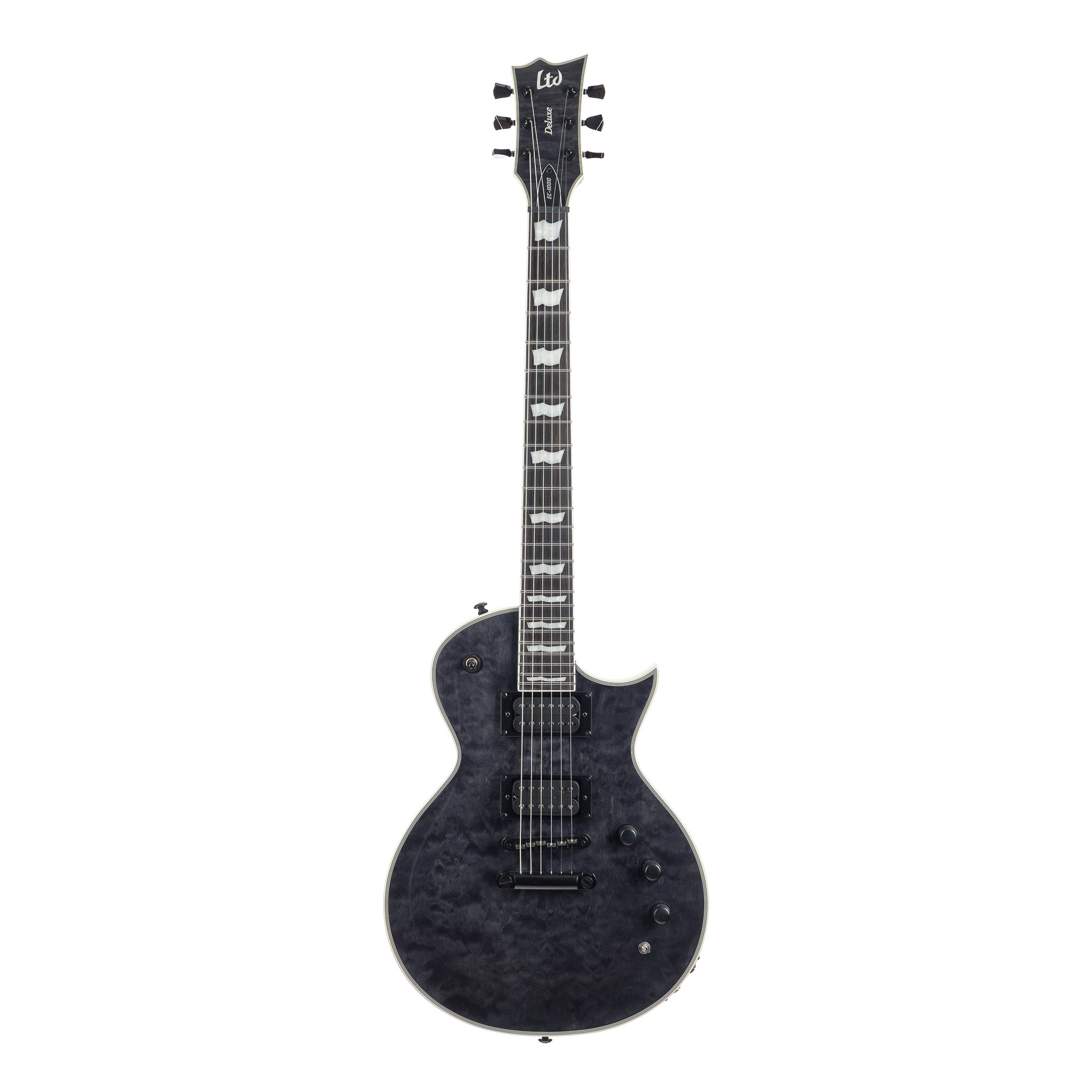 Strap in, captain—your tone is about to break orbit. The ESP LTD EC-1000 Piezo in Transparent Black is a star-forged instrument built for players who refuse to stay grounded. With its shimmering see-thru black finish and quilted maple top, this guitar looks like it was carved straight from a dark nebula and polished by starlight.