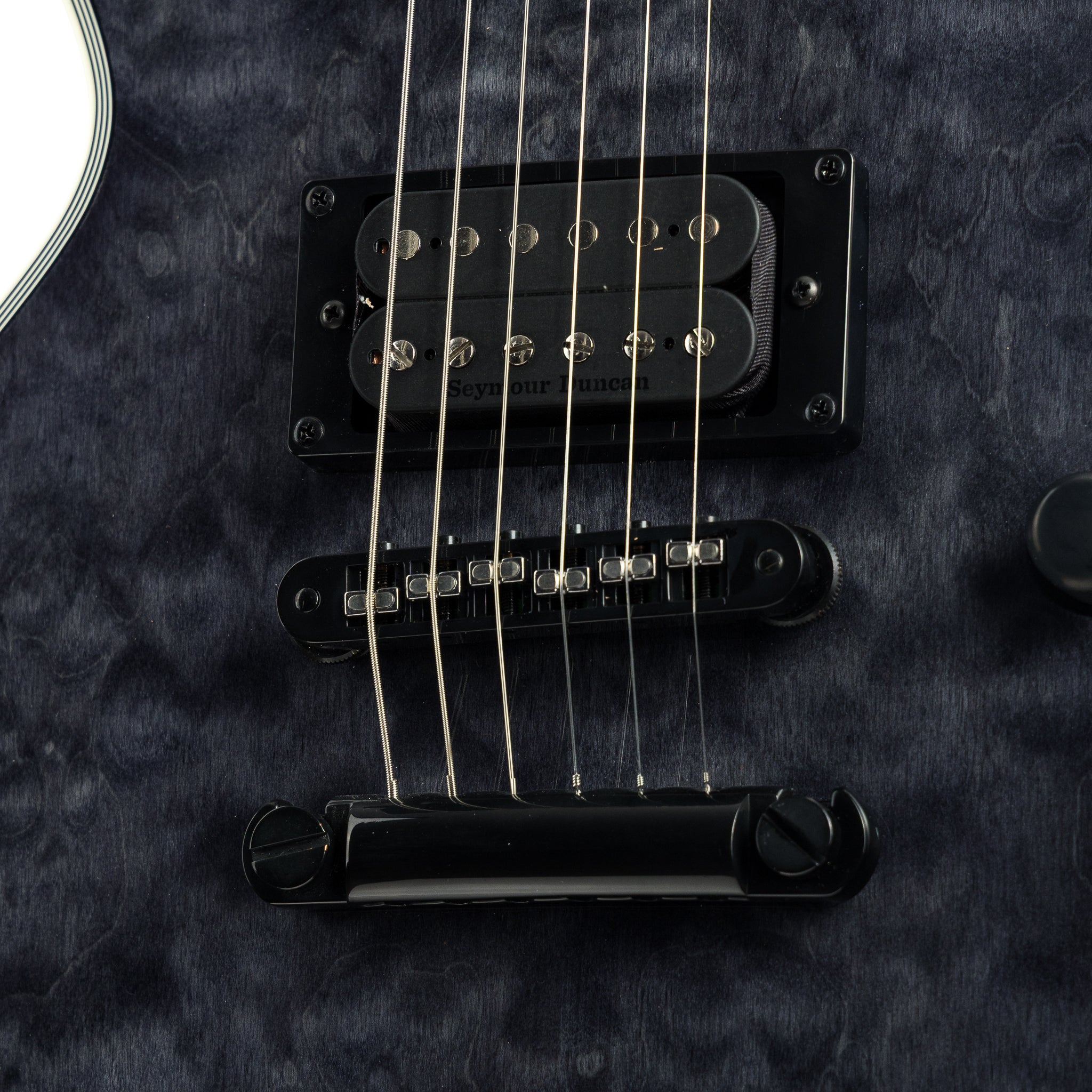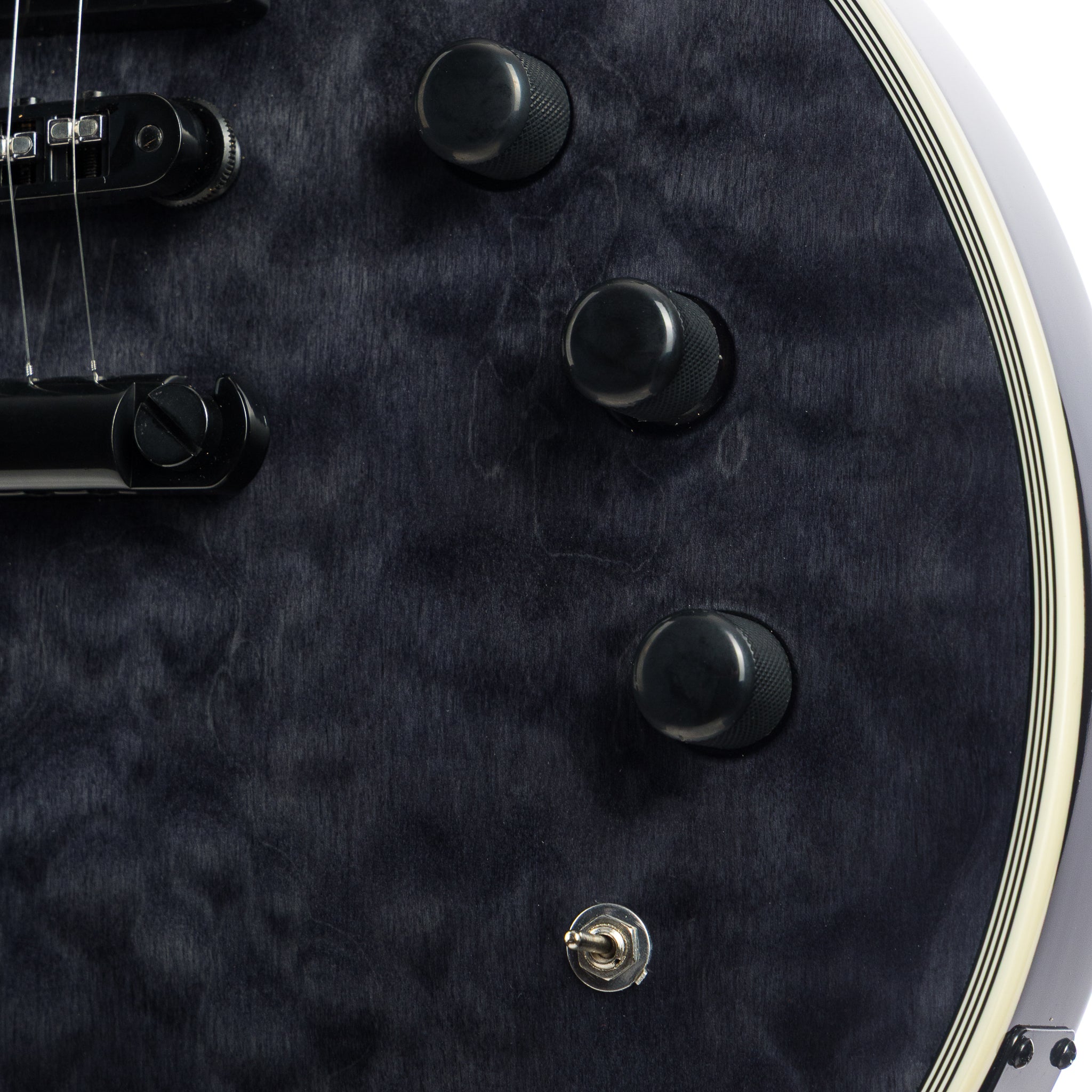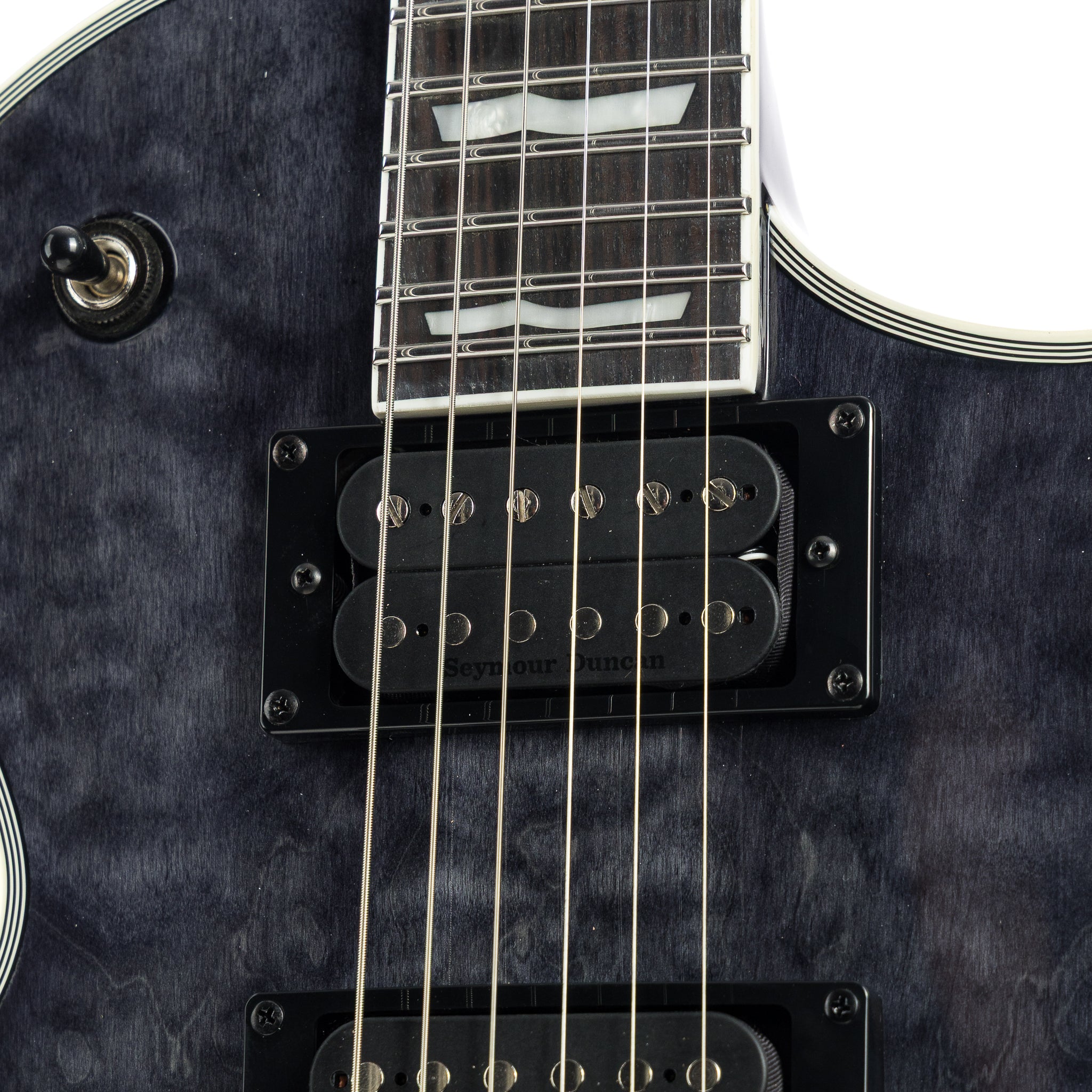 Strap in, captain—your tone is about to break orbit. The ESP LTD EC-1000 Piezo in Transparent Black is a star-forged instrument built for players who refuse to stay grounded. With its shimmering see-thru black finish and quilted maple top, this guitar looks like it was carved straight from a dark nebula and polished by starlight.
