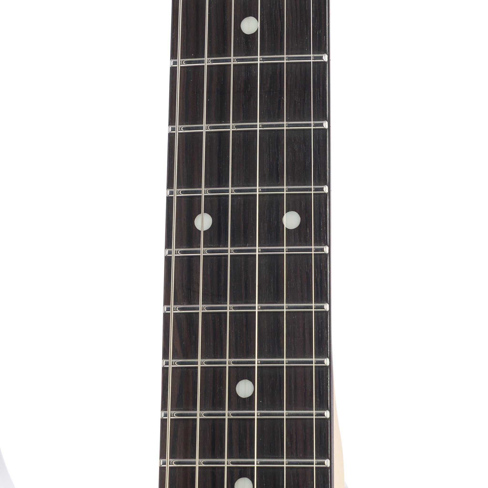 Its U-shaped neck profile, taken directly from George’s original specs, pairs perfectly with a Macassar ebony fingerboard, dot markers, and 22 extra-jumbo stainless-steel frets—smooth, fast, and built for precision across the entire range.