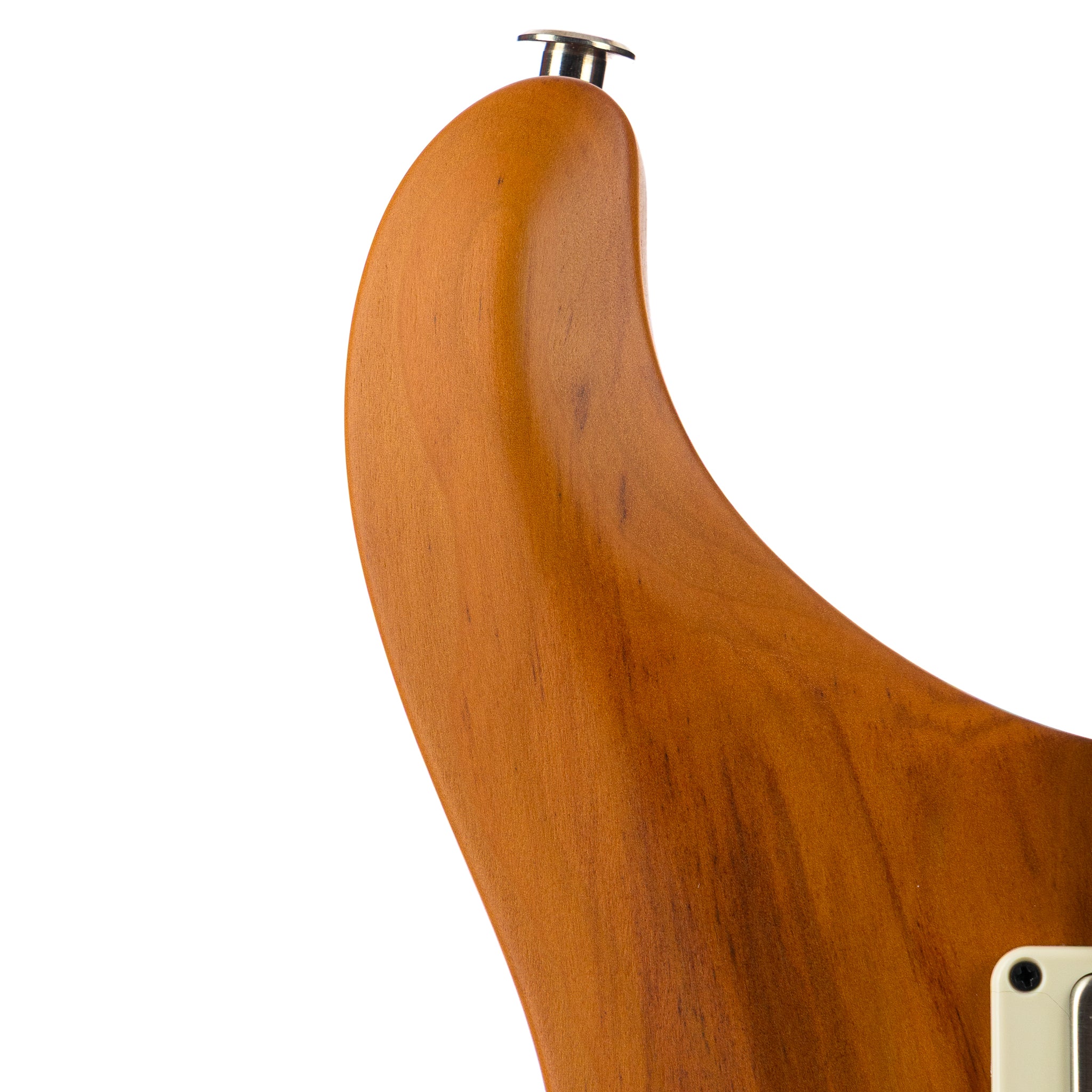 Harvested from Brazilian buildings where it served as siding for 100–150 years, Peroba Rosa brings a density and resonance forged over generations. Its aged fibers project a tone that is punchy yet warm, enhanced by the semi-hollow design for a voice that feels alive—like a meteor glowing as it cuts through the atmosphere.