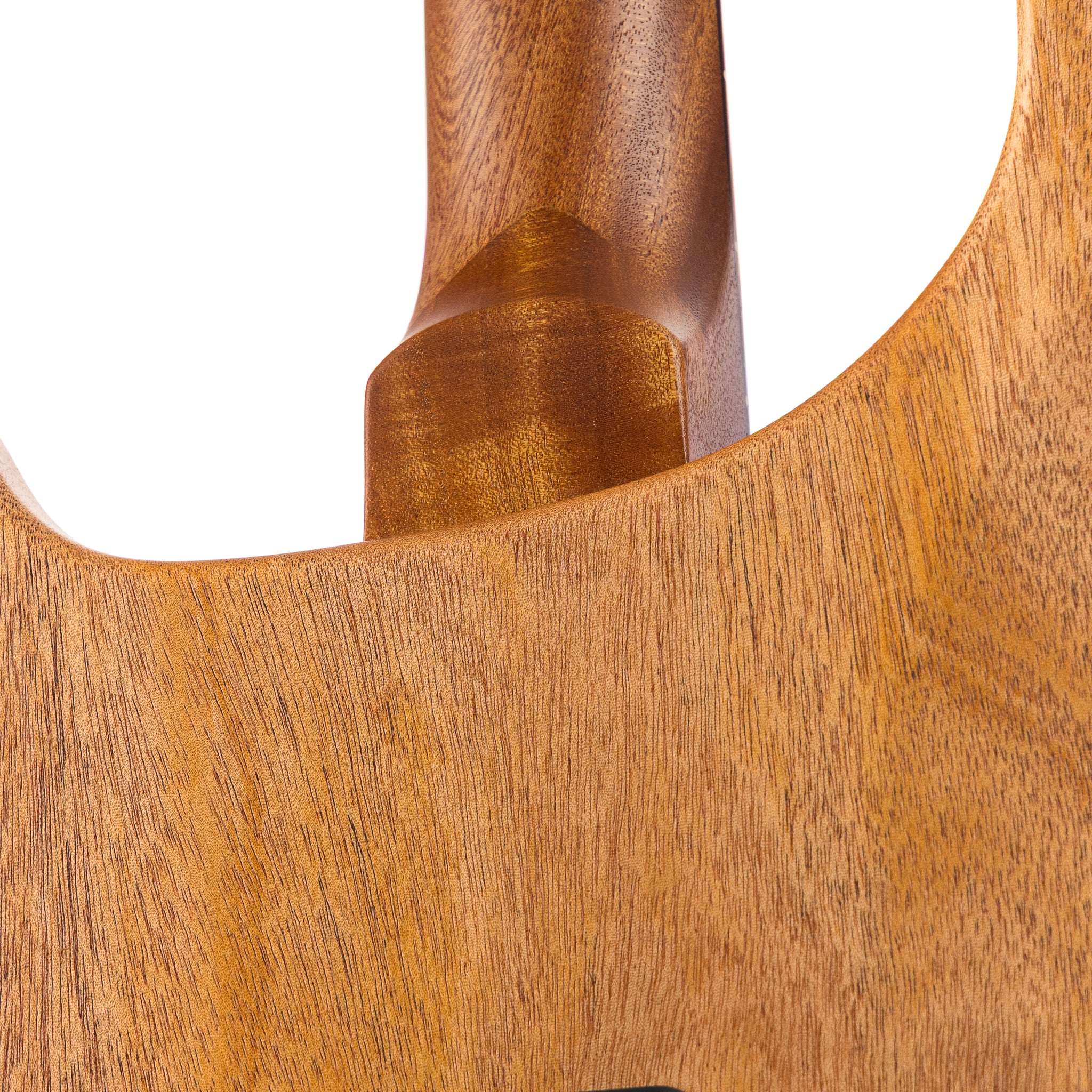 Traditionally used as structural house beams in Brazil, Guaribu Preto is a hard, reliable wood reborn here as an elegant fretboard. Its density adds definition and clarity, allowing notes to ring out across the sonic void with precision.