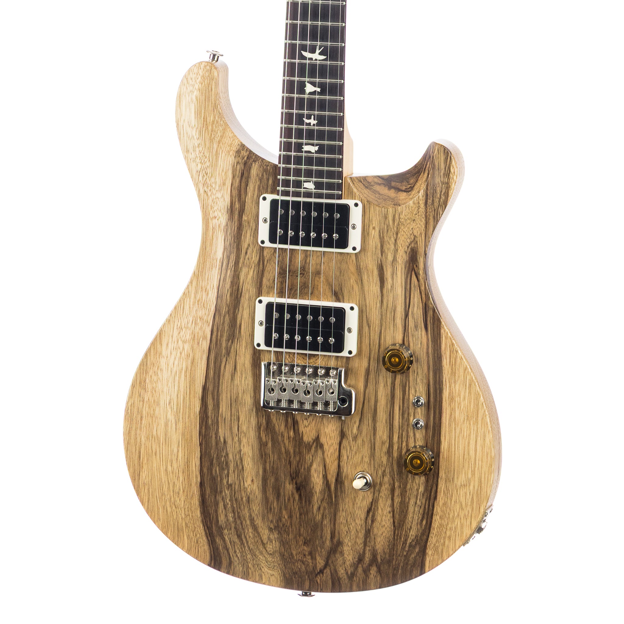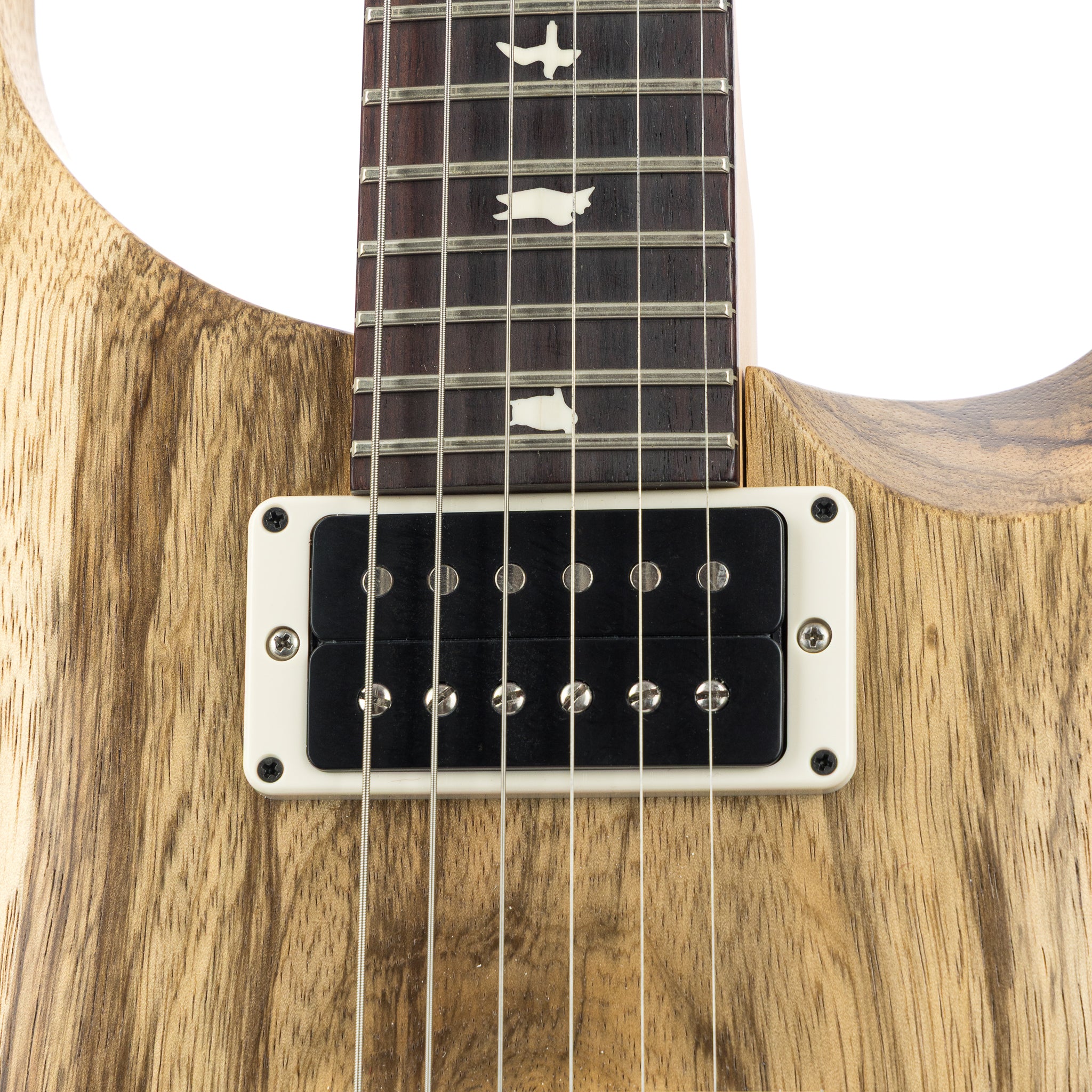 The black limba body isn’t just visually hypnotic—it sings. Known for its powerful midrange and warm, musical character, it brings a voice that feels both grounded and cosmic. Paired with PRS’s violin-carved top and satin nitro finish, the instrument resonates freely, sustaining like an orbiting satellite locked in perfect motion.