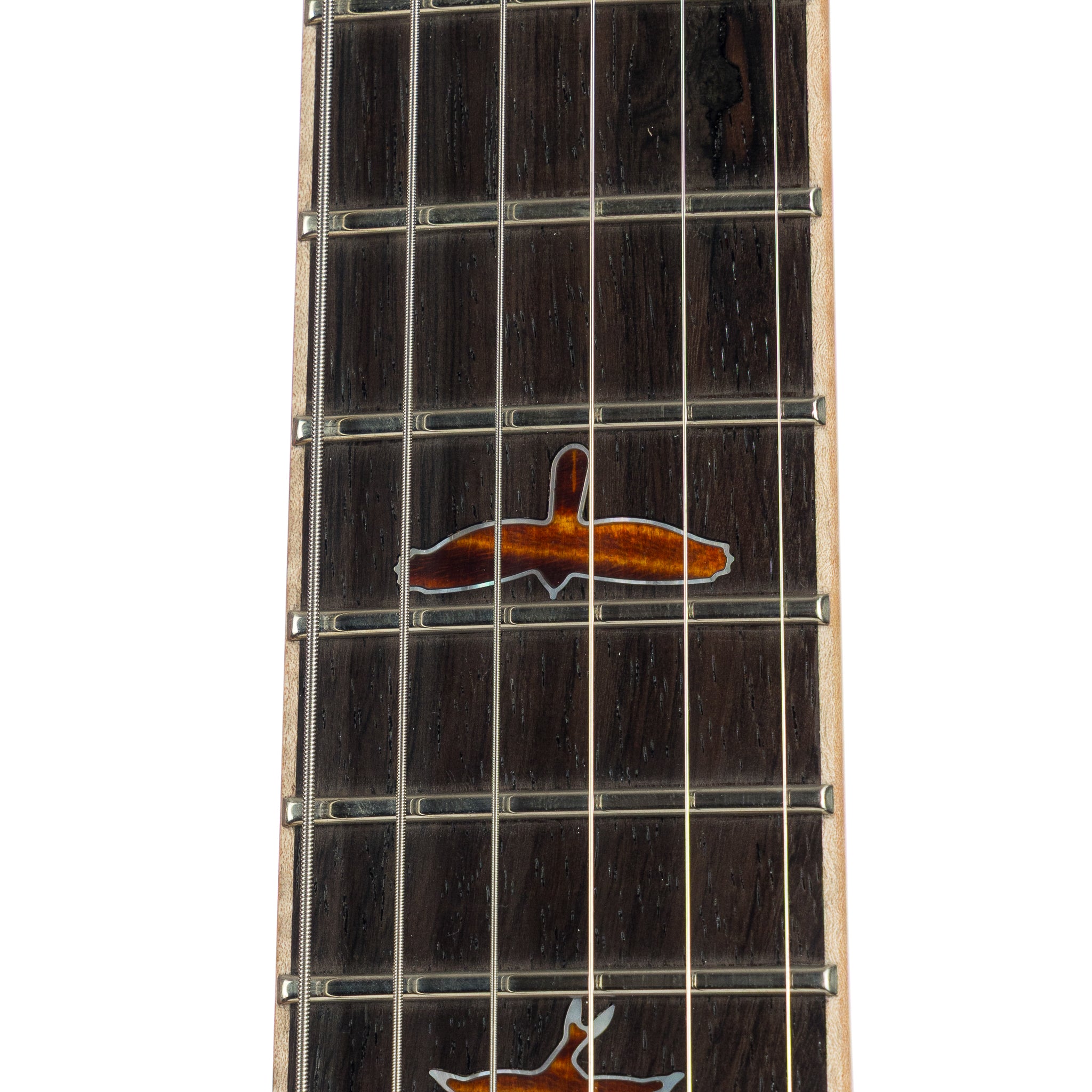 Fingerboard Inlay: Curly Maple Birds stained to match with White Mother of Pearl outlines