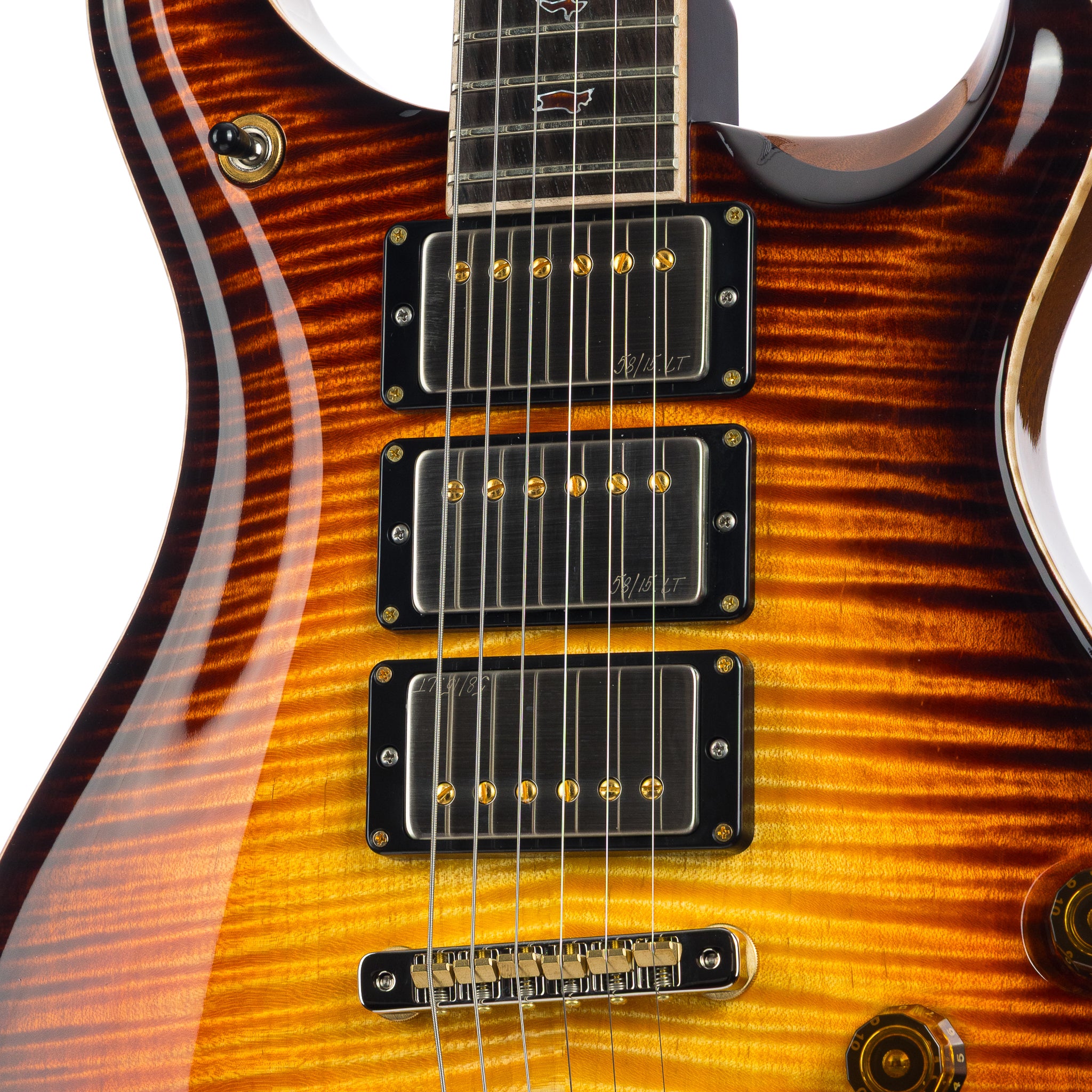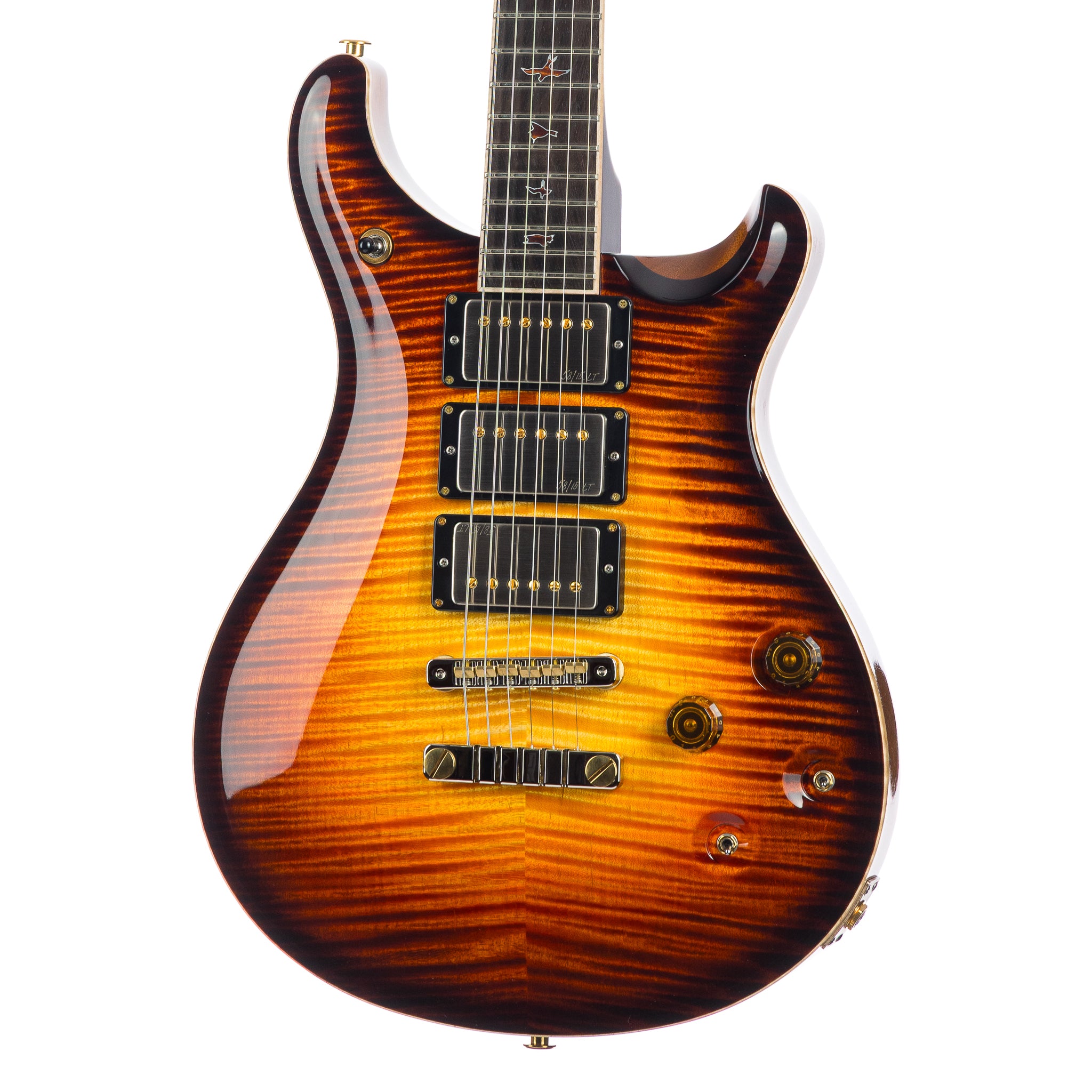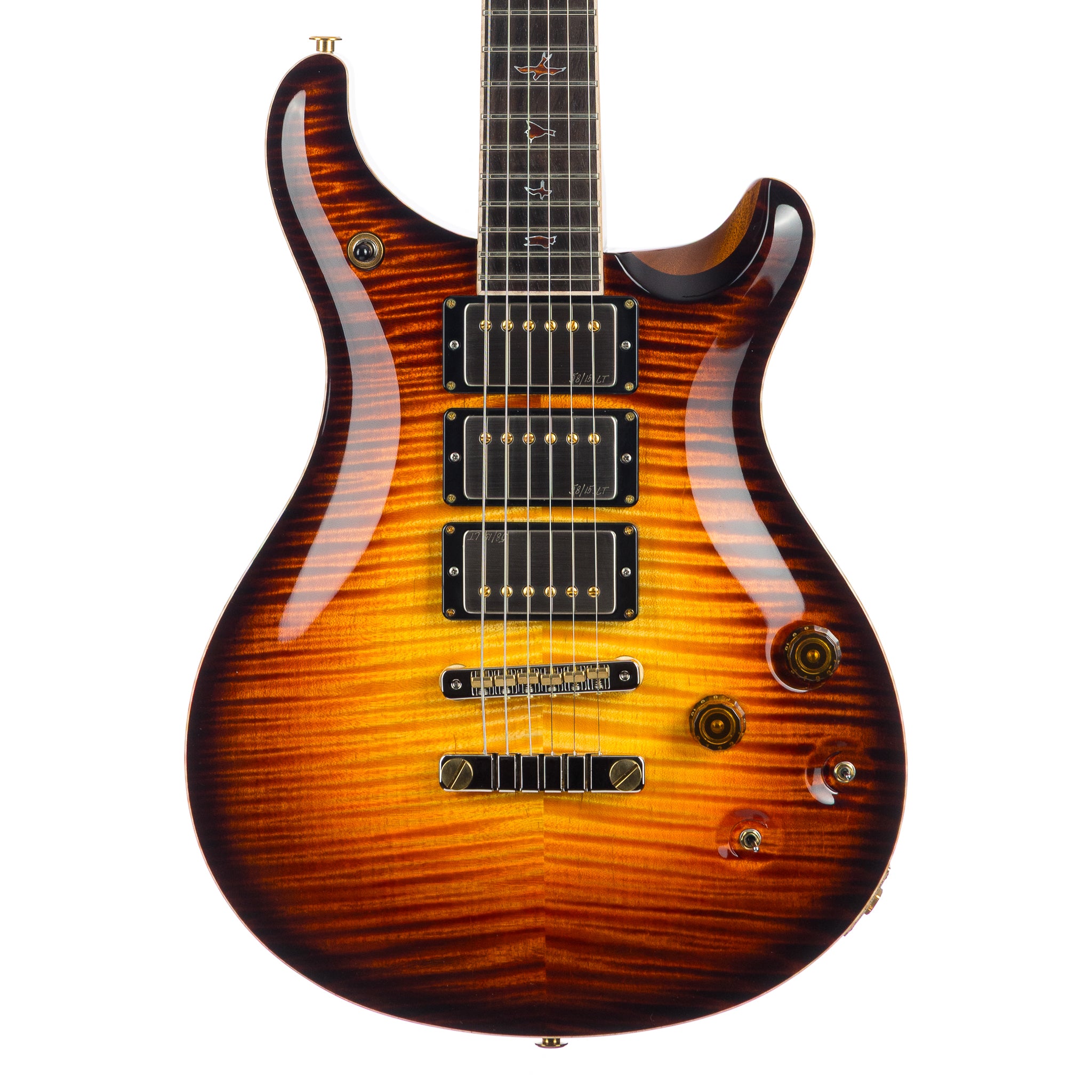 Hardware: Gold / Nickel PRS 2pc stop tail bridge, PRS Phase III setscrew locking tuning pegs with Ebony buttons, African Mahogany backplates, Bone Nut and Brazilian Rosewood truss rod cover
