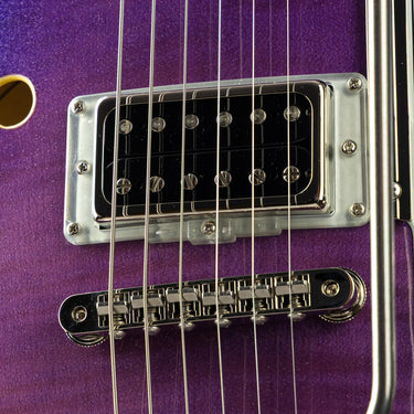 The Galaxy Purple Burst finish shimmers like a nebula under stage lights—deep purples and radiant highlights that make this Starplayer TV truly one-of-a-kind. Its semi-hollow flamed maple body with an arched top and F-hole delivers the perfect balance of resonance, warmth, and sustain, while the cream binding and nickel hardware add a classic touch of elegance worthy of the stars.