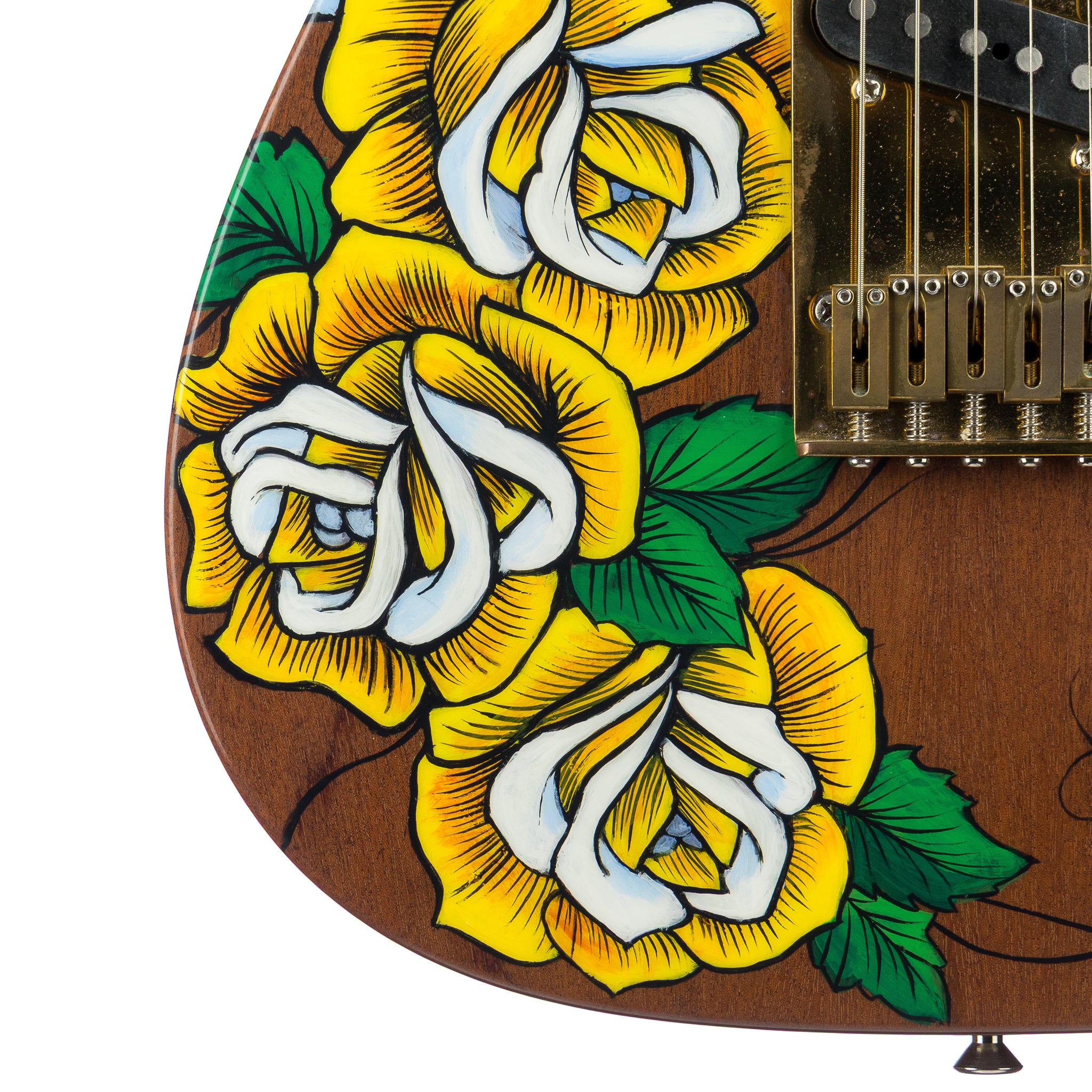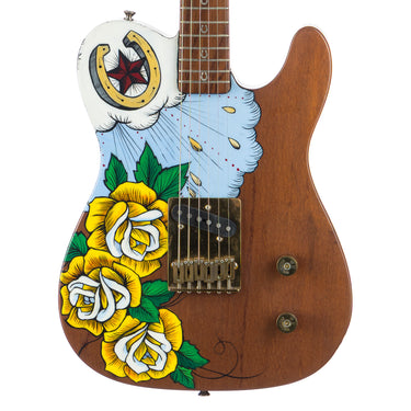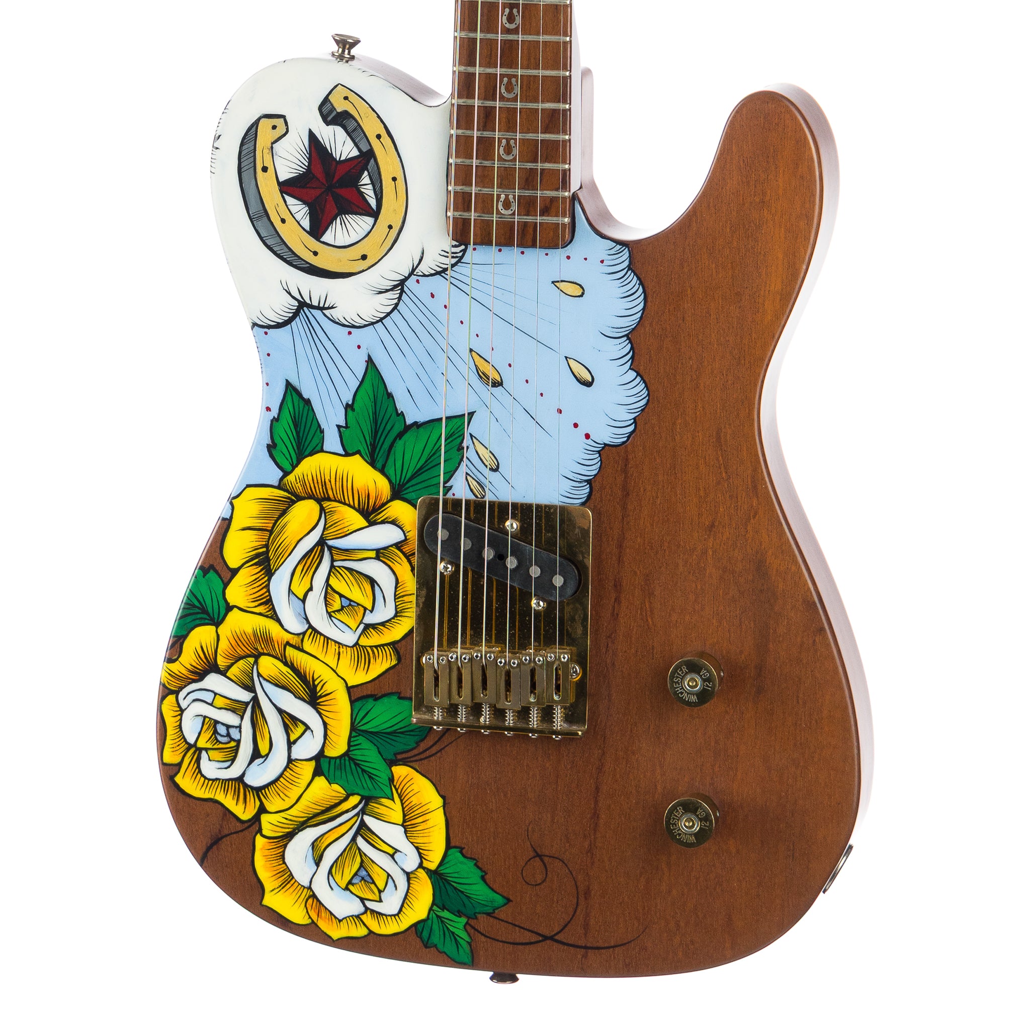 The first thing you’ll notice is the hand-painted “Desert Rose” artwork by Briza Camacho, a blooming celestial tumbleweed glowing across the natural WLS satin finish—a perfect fusion of cosmic wonder and frontier romance.