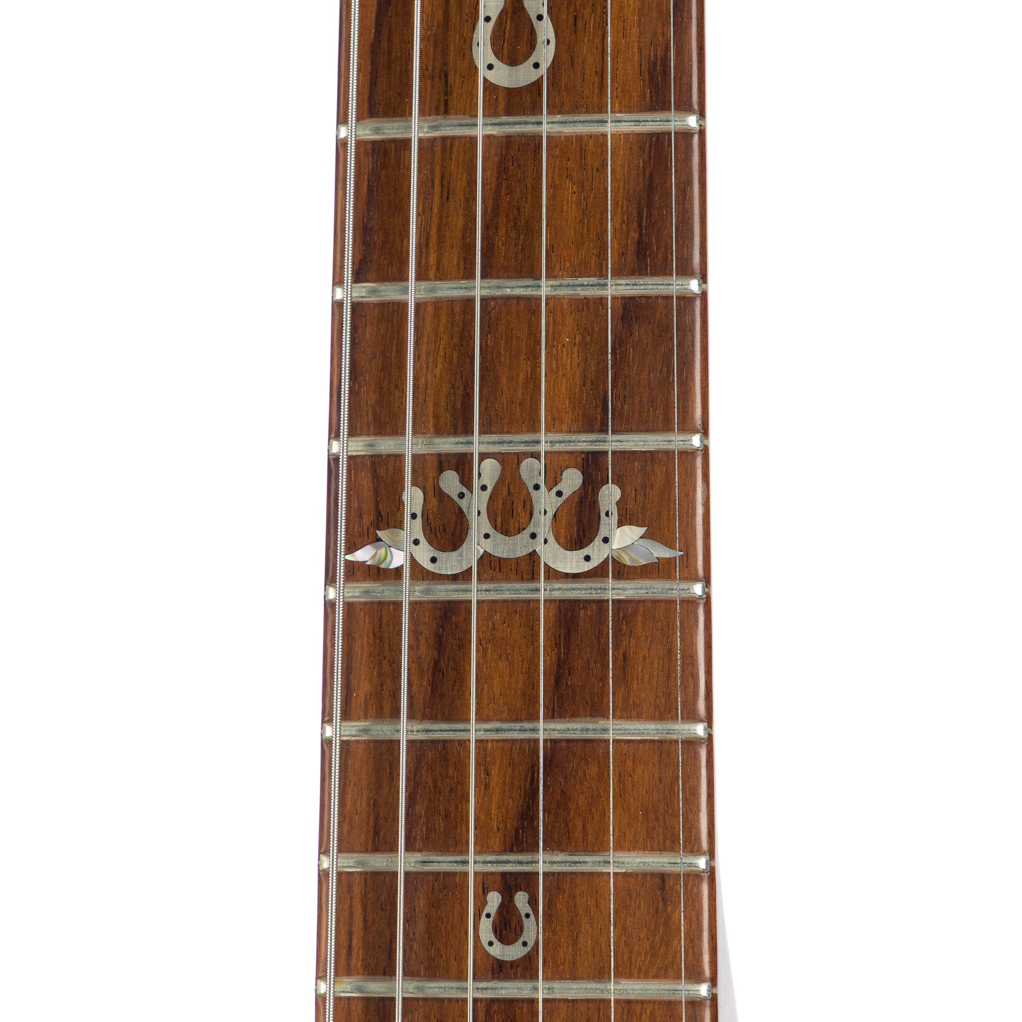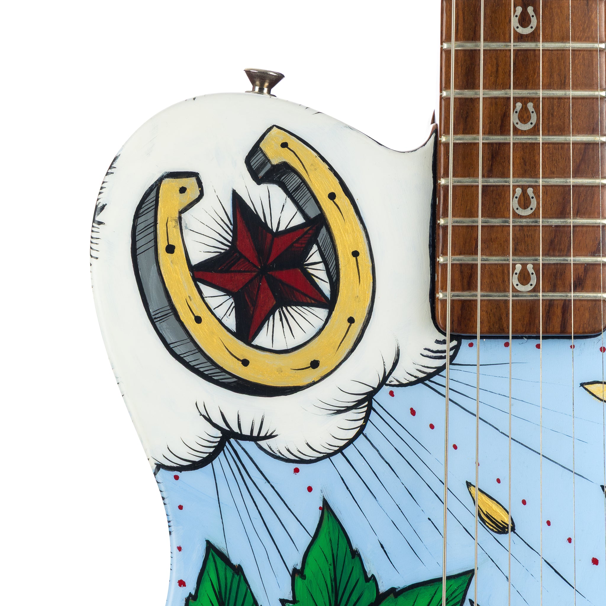 In true space-cowboy fashion, this Esquire sports sterling-silver horseshoe inlays crafted by Ron Thorn—tiny good-luck talismans for your journey through the sonic frontier. Add in the Schaller brass 6-saddle bridge, custom shotgun-shell knobs, and a hardwired Tele Texas Special bridge pickup, and you’ve got a tone machine that snaps, snarls, and sings like a lone coyote under a Martian moon.