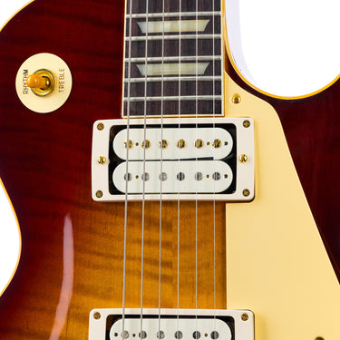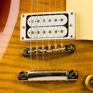 What really sets this one into orbit? Gold hardware—a rare and striking sight on a ’59 Standard—paired with double white Custombuckers that channel pure late-’50s PAF magic. Warm, articulate lows. Vocal mids. Highs that shimmer like starlight without ever getting harsh.