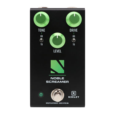 Imagine being able to combine your favorite parts of different overdrive & boost pedals in order to create hybrid sounds no one has ever played through before. That is exactly what we’ve engineered with the Noble Screamer. It’s a 4-in-1 pedal that gives you two very familiar drive circuits and two brand new amp-like distortion tones that no one has used before. It’s almost like pedal-modeling, except these are 100% analog circuits, and you decide which tone-control or clipping-section you want to play through. You can play through battle-tested, classic overdrive effects or innovate new music with hybrid tones, let your ears be the judge. Even with all of these features the pedal remains a simple and easy to use three knob overdrive. The innovation in the Noble Screamer doesn’t end there; our new design features true-bypass or buffered, truly silent switching, on the fly. The Keeley Noble Screamer Overdrive and Boost is entirely manufactured at Keeley Electronics and is the first in our new aluminum enclosure.
