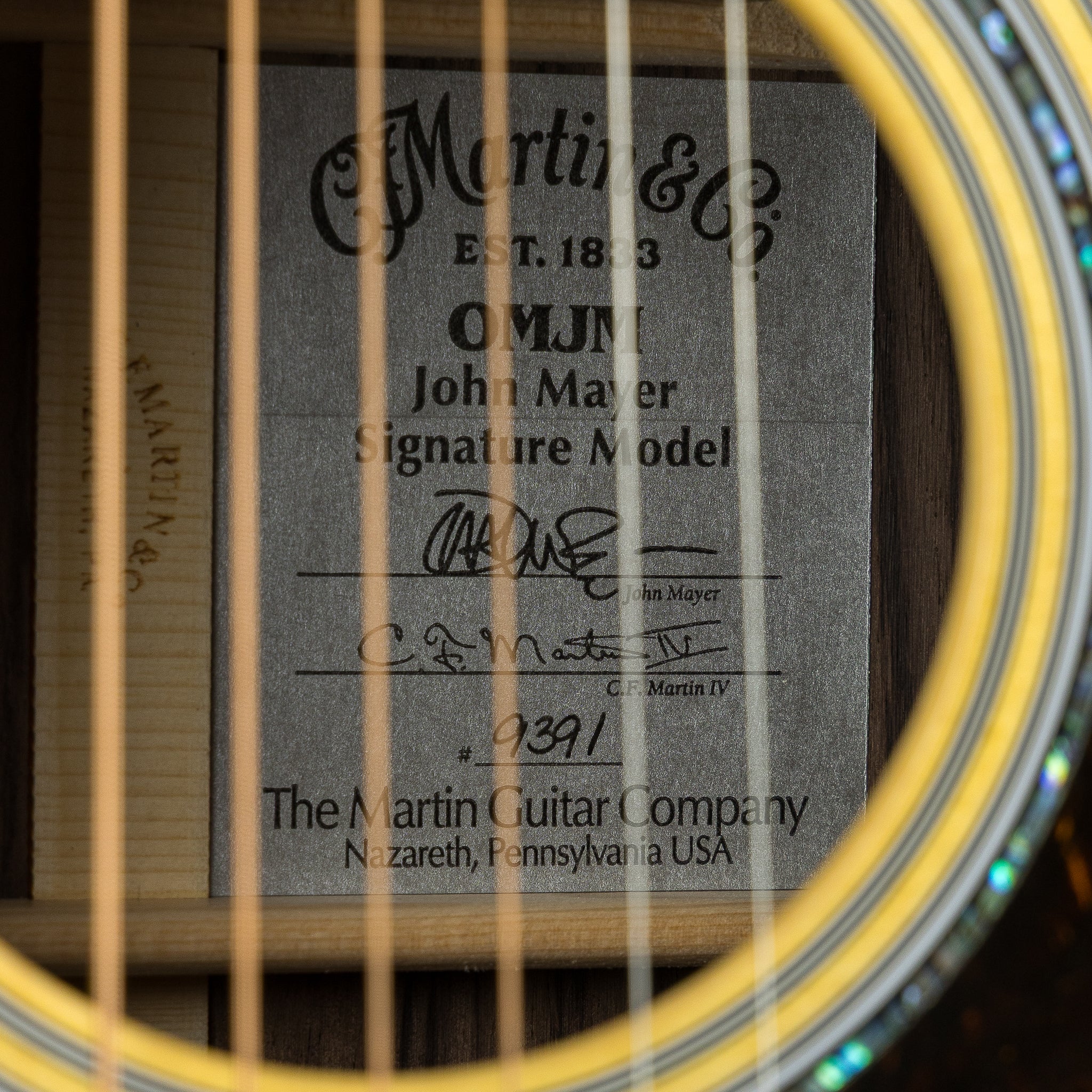 The Interstellar Tone Traveler has followed John Mayer's relationship with tone long enough to understand that it isn't casual — it is a lifelong pursuit of the exact right sound, the exact right feel, the exact right instrument for the moment. More than two decades of collaboration between Mayer and Martin have produced some of the most celebrated acoustic guitars of the modern era, and the OMJM carries that lineage forward in a form that honors its origins while welcoming a broader audience into the conversation. Where the original limited-edition OM-28JM was reserved for the few, the OMJM distills those same high-end sensibilities — bold herringbone trim, abalone rosette, East Indian rosewood back and sides, and custom mother-of-pearl fingerboard inlays bearing Mayer's own signature — into a guitar that more players can find their way to. The Engelmann spruce top is the tonal centerpiece: softer and more dynamically sensitive than Sitka, it responds with a warmth, complexity, and quickness of attack that makes every touch feel deeply personal, ideally suited to the expressive, blues-influenced style that defines Mayer's playing. Antique toner top color adds a vintage cast to the gloss finish, while antique white binding and tortoise pattern pickguard complete an aesthetic that is timelessly elegant without being ostentatious.