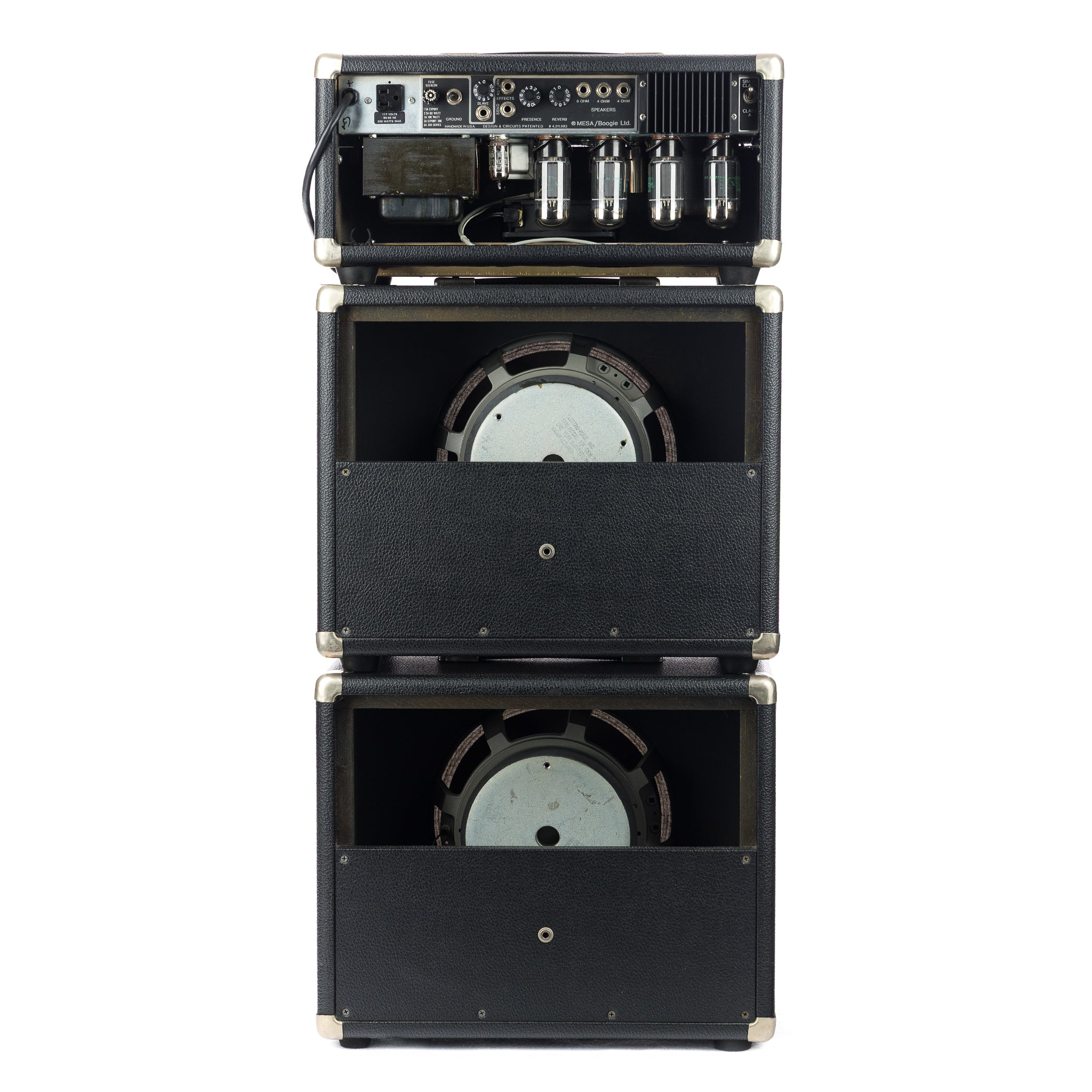 Included are two matching 1x12 open-back cabinets, ordered at the same time as the head and loaded with the legendary EV EVM-12L Black Shadow speakers—the speakers that define punch, authority, and infinite headroom. This is the full, period-correct rig as it left Mesa in the mid-’80s.
