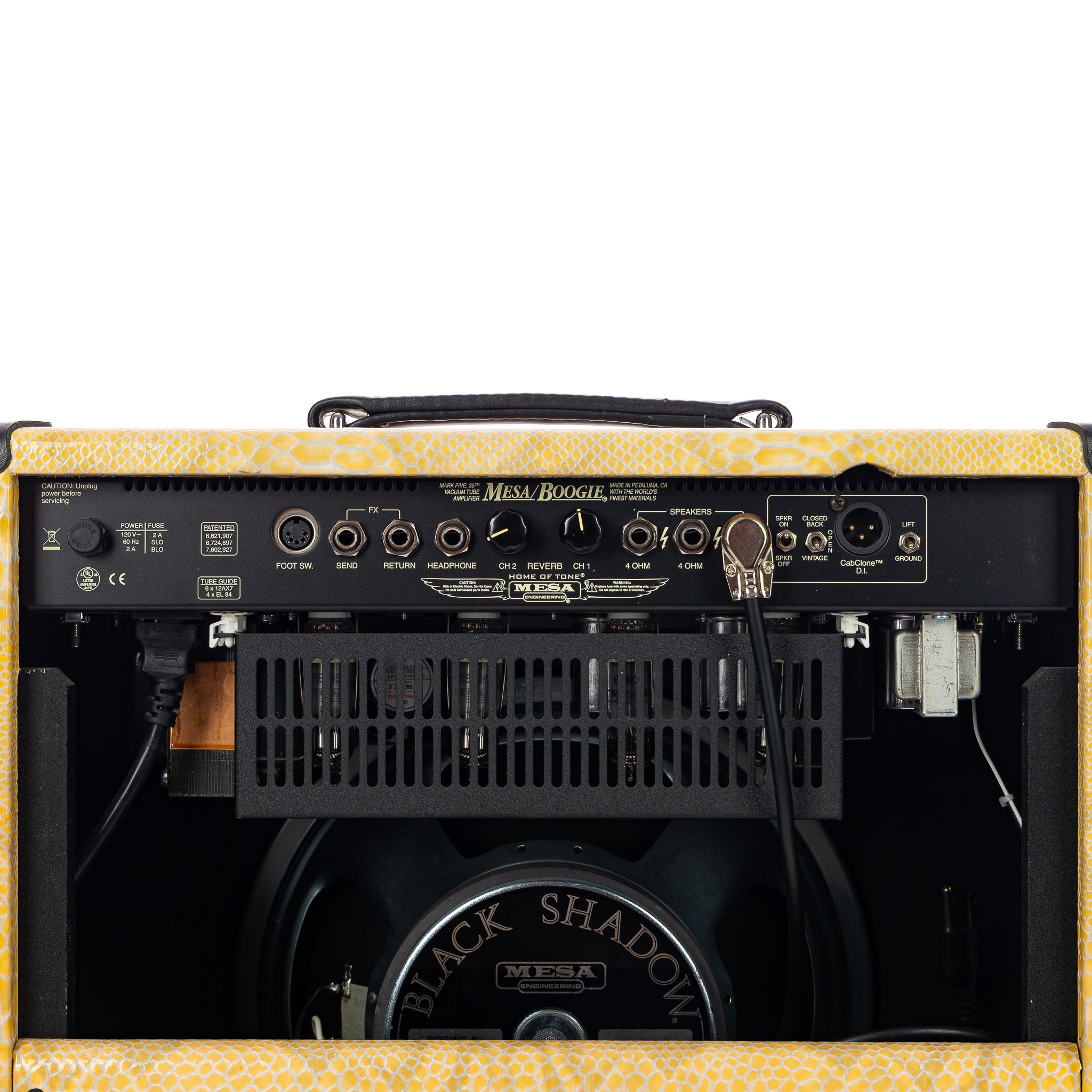 Cabinet Simulation/Direct Recording Output: Built-in Mesa CabClone™ Cab Simulator with Internal Amp Load & Headphone Output - Featuring Closed Back, Open Back & Vintage Cabinet Simulations, Speaker On/Off and Ground Lift Switches