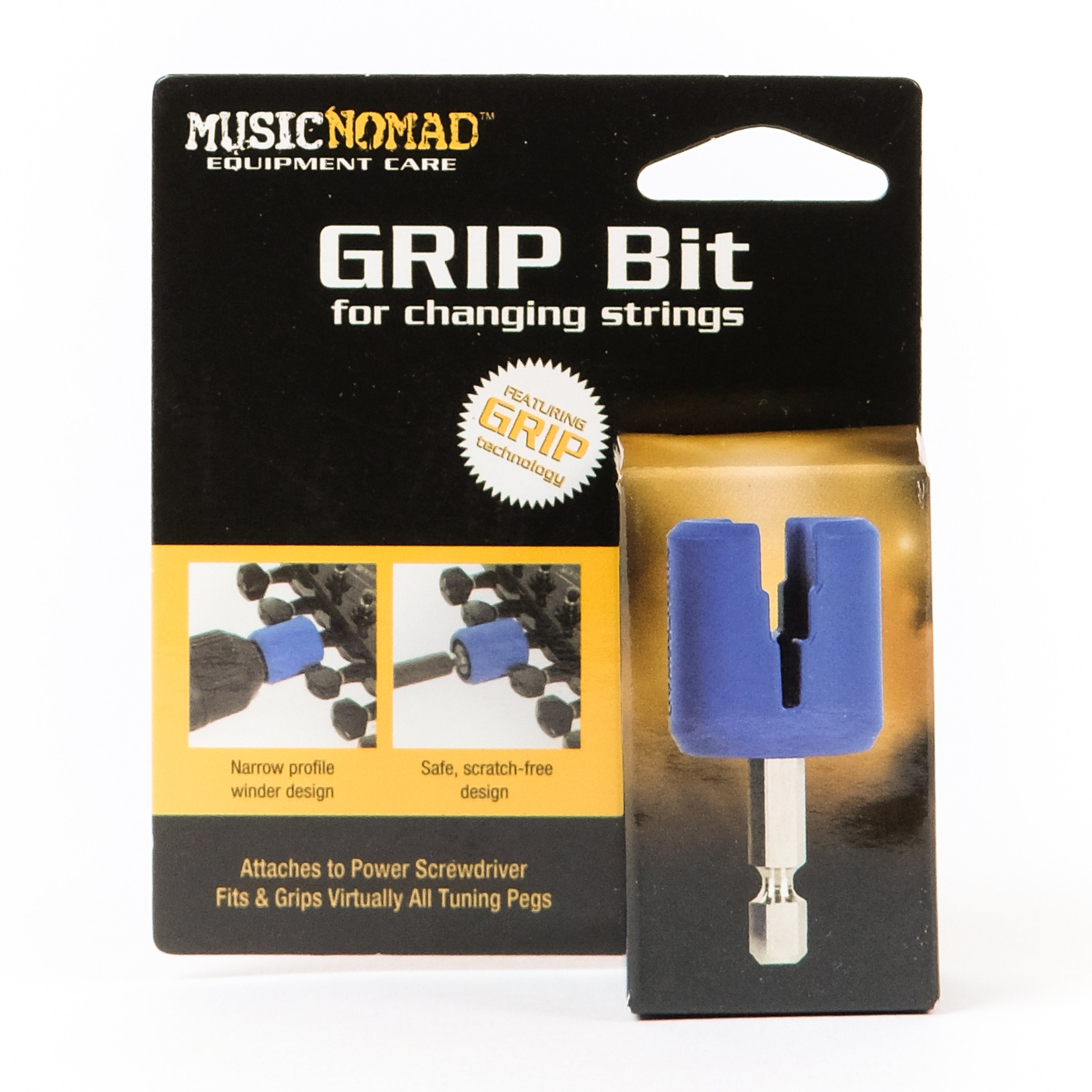 Changing strings just got a whole lot easier, safer and more FUN!. MusicNomad’s innovative GRIP Bit peg winder attaches to any cordless power drill or power screwdriver. Our innovative GRIP Technology smoothly and silently slips over your tuning pegs for a scratch free & clank free operation compared to traditional plastic peg winders. Our contoured design fits virtually all tuning pegs both big and small. It’s perfect for electric and acoustic guitar, bass, banjo, mandolin, ukulele and orchestral strings. Using the highest quality materials including a carbon steel shaft. So don’t lose it or loan it, you’ll look forward to the next time you change your strings. That’s MusicNomad quality – raising the bar in equipment care.
