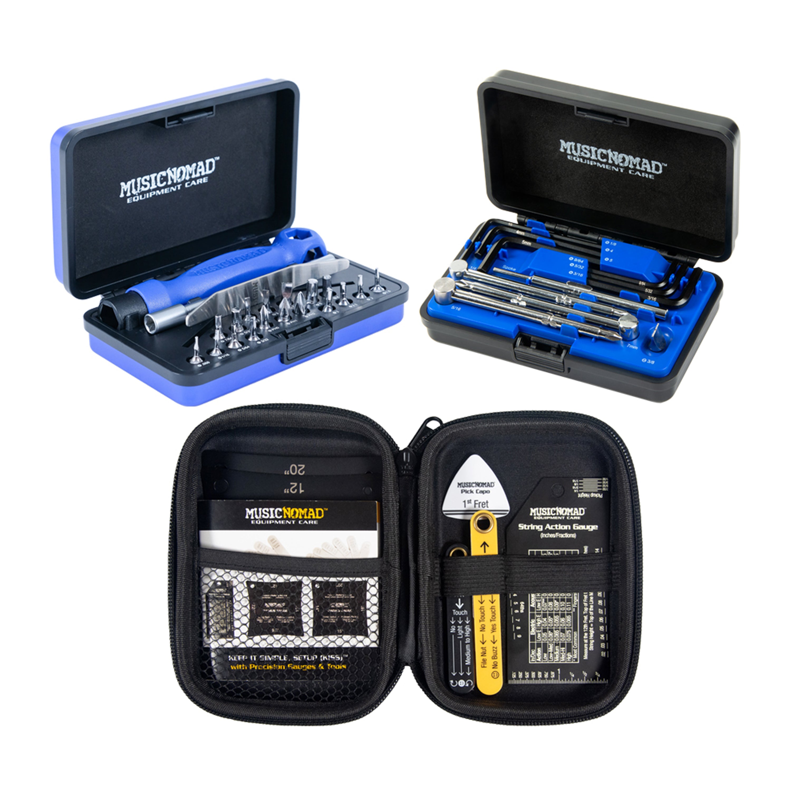 Not only is it fun, but a properly setup guitar takes your playing and sound to a whole new level. In collaboration with Master Guitar Tech Geoff Luttrell, MusicNomad has developed the KEEP IT SIMPLE, SETUP (KISS)™. We demystified the process by developing innovative, precision gauges and tools combined with step-by-step general guidelines anybody can follow and setup their guitar to play and sound great. With our KEEP IT SIMPLE, SETUP (KISS)™ method and our gauges you can check the vital areas of your guitar and use our tools to perform your own setup. The Starter Kit bundle includes gauges that work for all Electric, Acoustic, Classical and Bass Guitars. The 2 tool sets will adjust most Guitars and Basses. Not included: Nut Files or Acoustic Guitar Soundhole Truss Rod Wrenches.