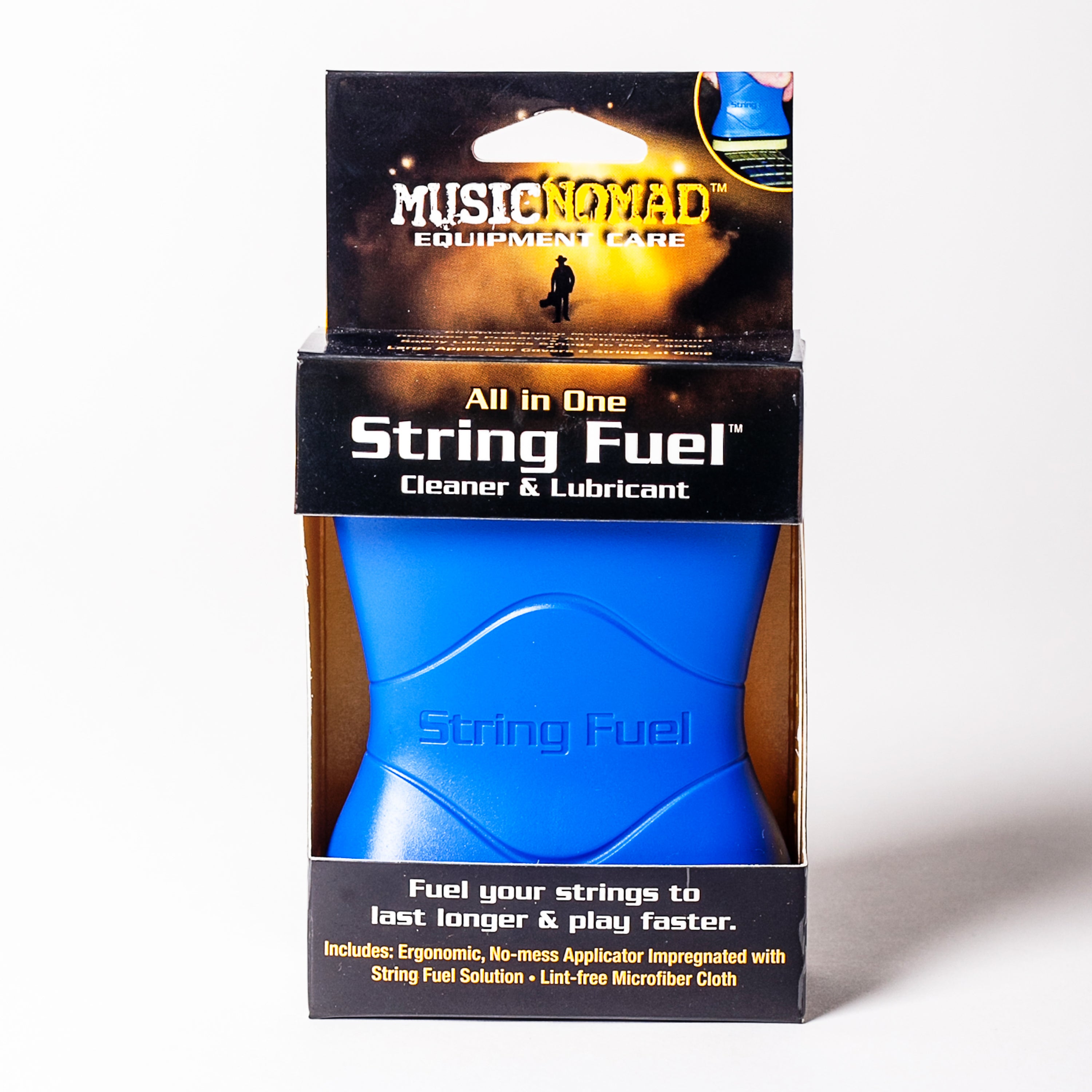 String Fuel is a hybrid blend of refined naturally occurring oils that are speed blended with premium quality mineral oils to deliver a string cleaner & lubricant unlike any other. Our proprietary formulation allows you to both clean & protect your strings to last longer and sound better while reducing finger noise and enhancing the speed you can slide your fingers. It’s silicone free & safe for any finish and even conditions unfinished fretboard wood. Includes the String Fuel solution impregnated in a no-mess ergonomic applicator and a lint free microfiber cloth that cleverly stores inside the applicator handle.