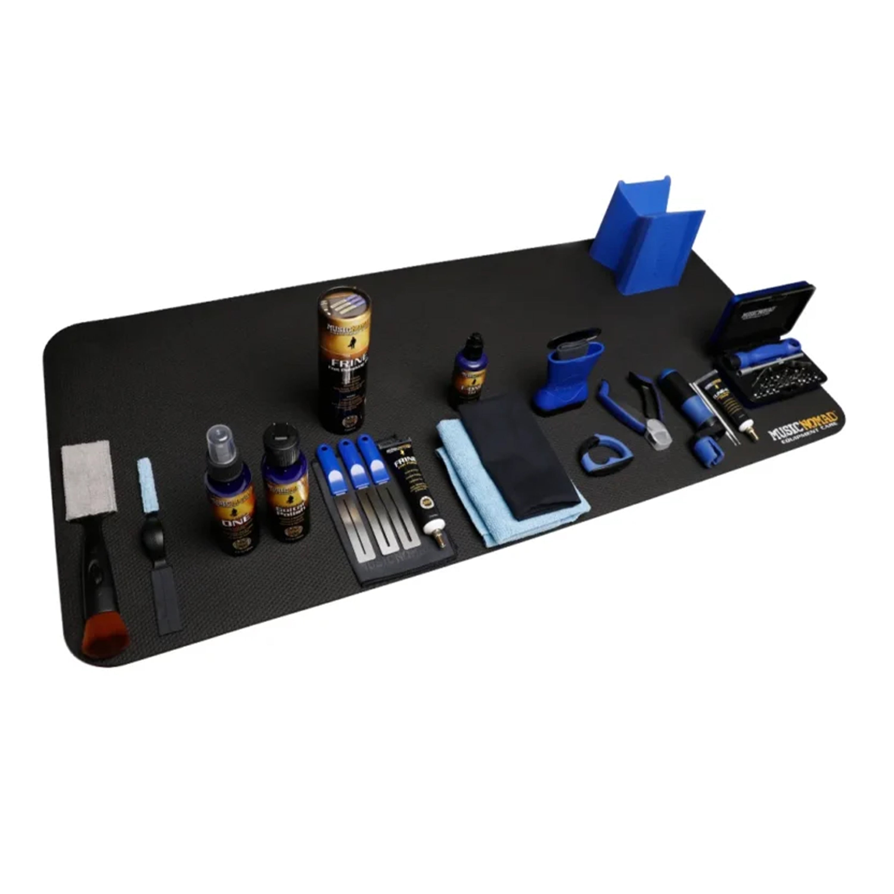 Get your home set up with what the top touring techs and repair shops use every day to make the gear they work on look, sound and play the best. MusicNomad's Ultimate At Home Work Station features 11 of our "must-have" products. It starts with our premium work mat and innovative neck cradle that allows you to safely work on any string instrument. Then we give you all the product to detail, clean, polish and condition all the necessary areas to maintain and protect your gear. Lastly, we include all our premium string changing tools so string changing is a cinch. Plus the 26 pc. Guitar Tech Tool set that allows you to adjust everything on your gear but the Truss Rod. Every product is designed and engineered to be best in class. You will not be disappointed and look forward to the next time your work on your gear.
