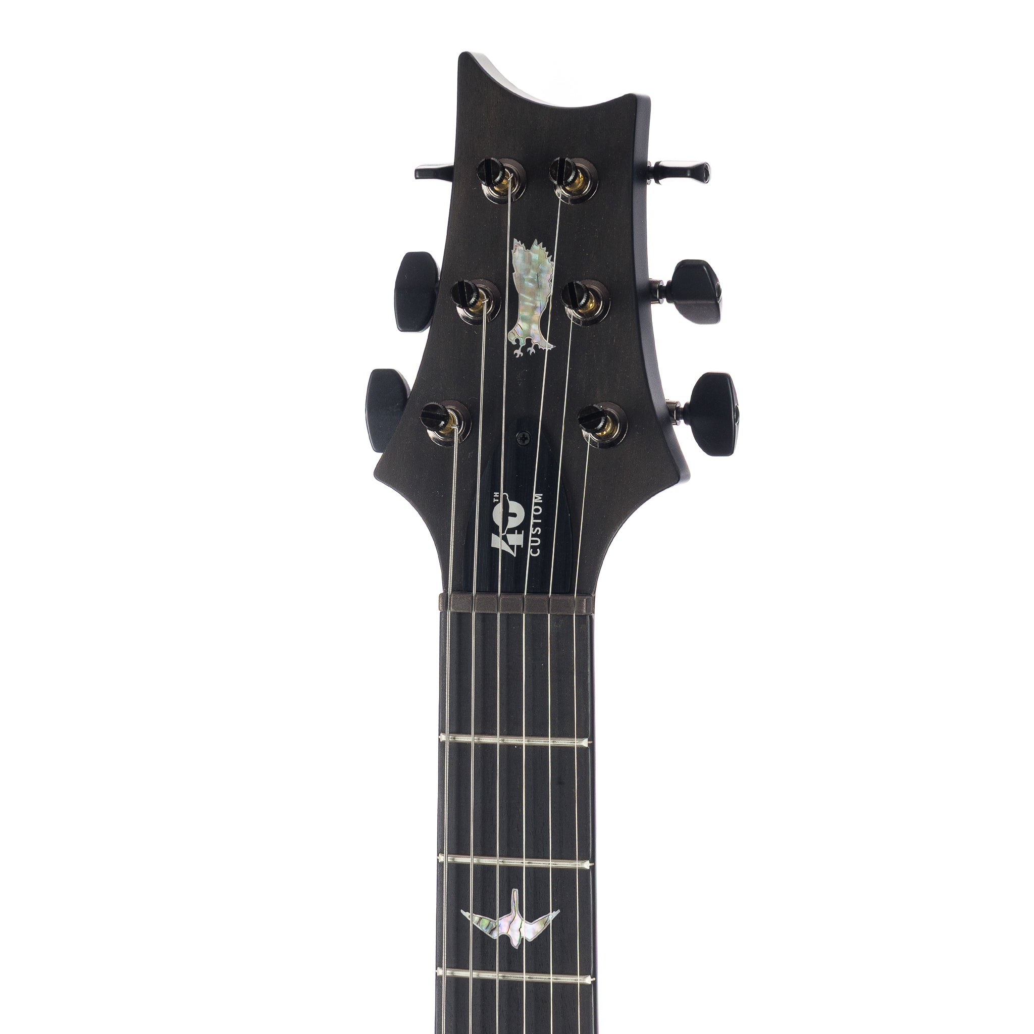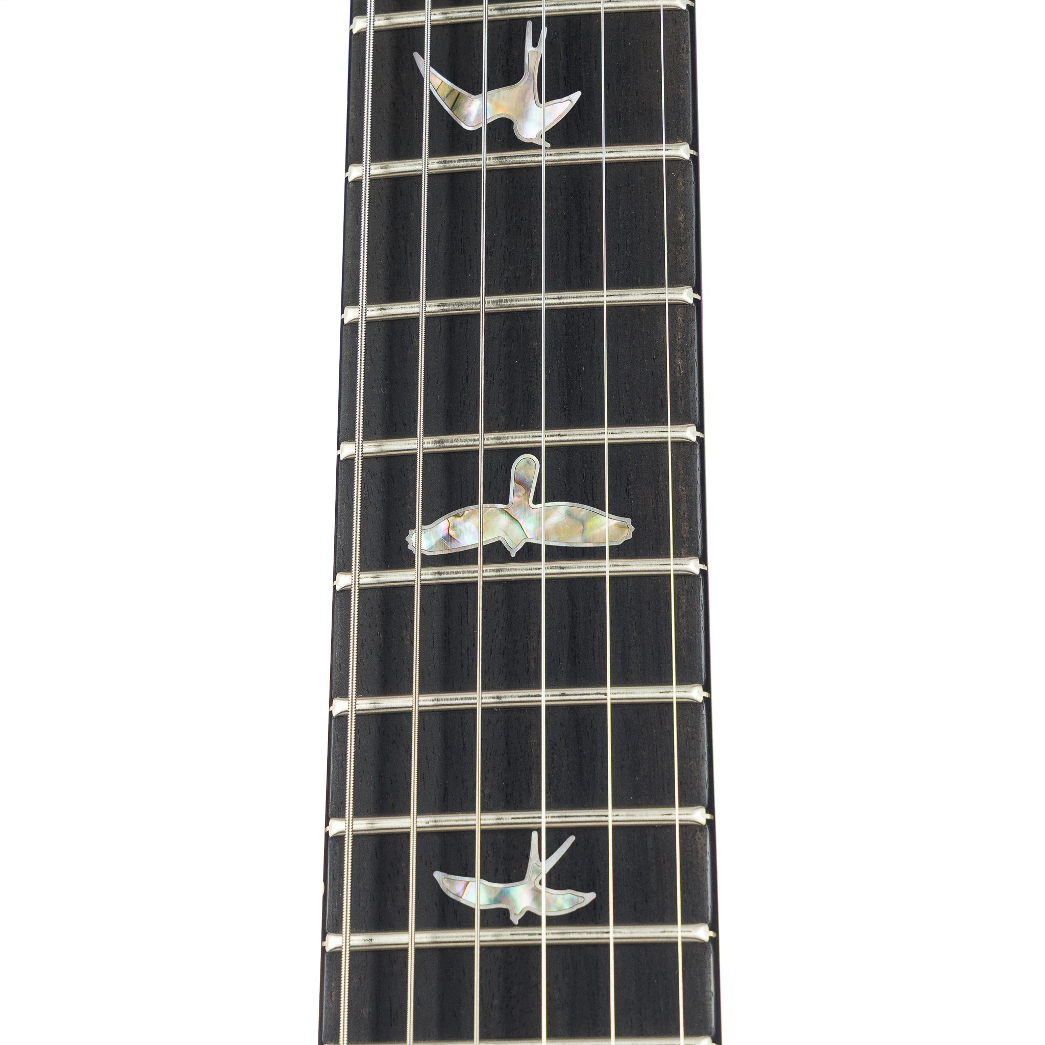 This 40th Anniversary model also features a premium ebony fretboard and matching headstock veneer, accented with smoked black hardware and outlined “Old School” bird inlays — a perfect balance between vintage PRS style and modern elegance.