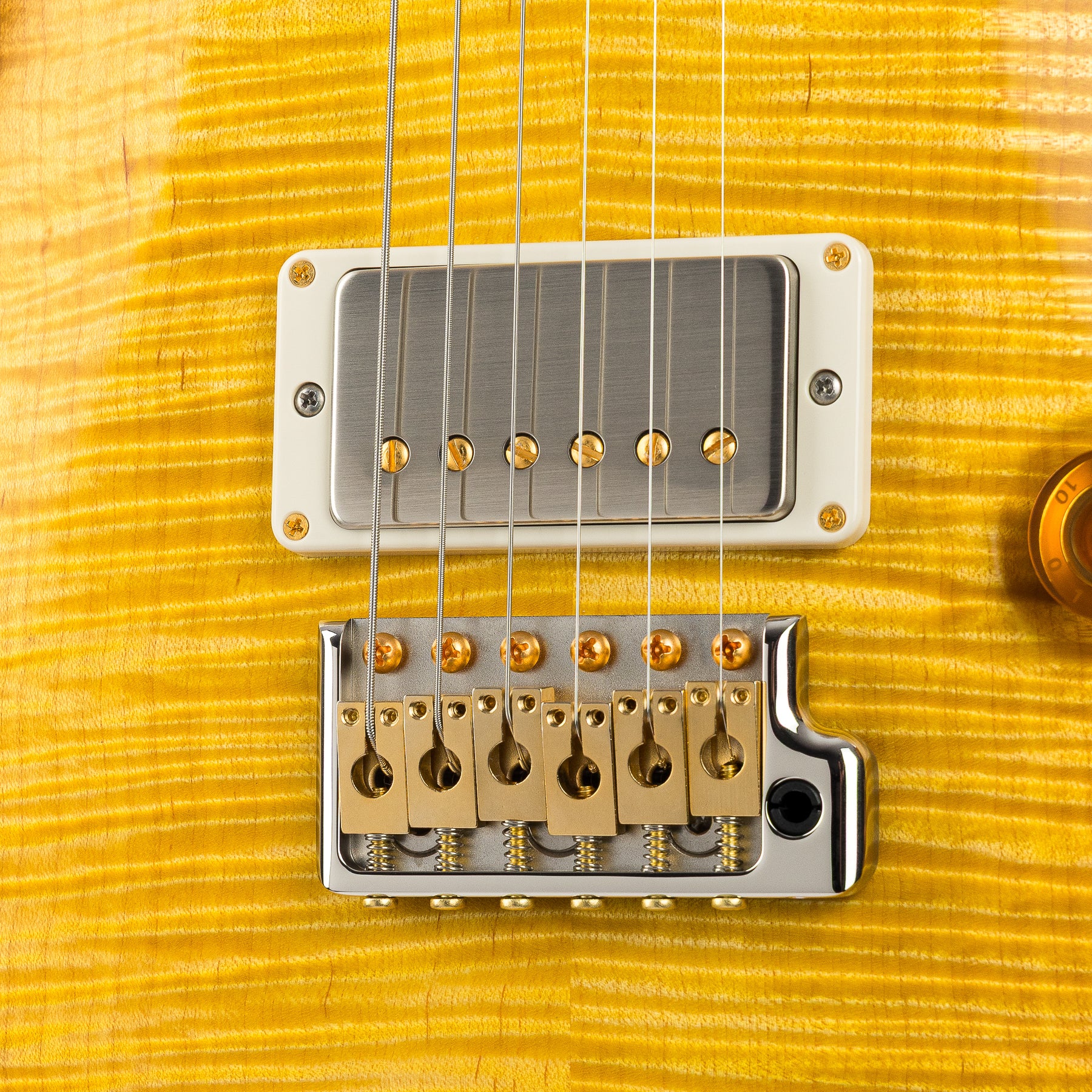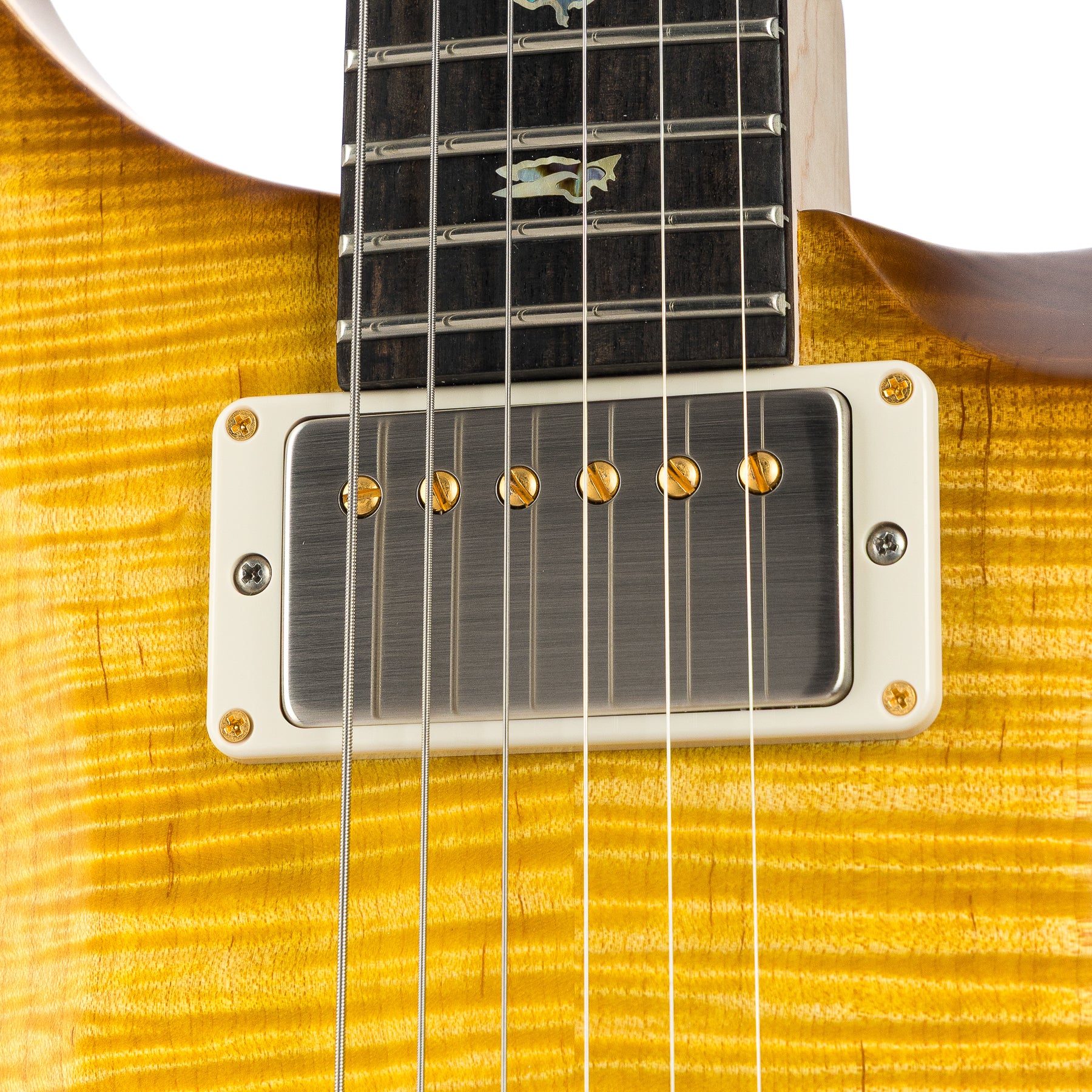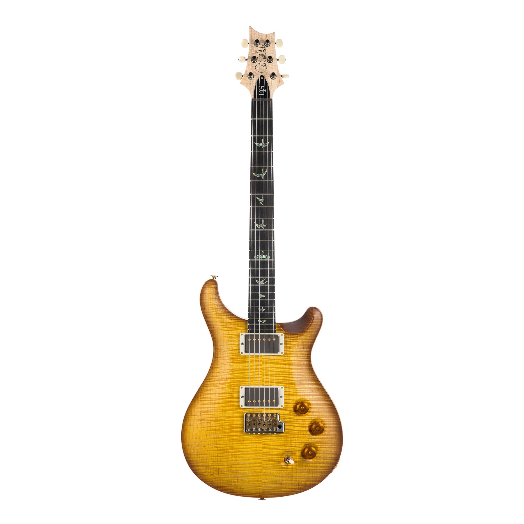 There are signature guitars, and then there are signature guitars born from a genuine obsession with tone — and the PRS DGT belongs firmly in the latter category. David Grissom is the kind of player the Interstellar Tone Traveler goes out of their way to study: a guitarist's guitarist whose reputation for taste, feel, and extraordinary tone precedes him across every galaxy in the known universe. The Wood Library designation means this particular instrument was hand-selected by PRS's own luthiers from their most exceptional stock — a Curly Maple 10 Top draped over a Swamp Ash body that changes everything about how this guitar speaks. Where mahogany offers warmth and thickness, Swamp Ash brings something rarer and more addictive: percussive attack, a tight and defined low end that never blooms into muddiness, and a sparkling, airy high end that makes single notes ring like struck crystal. Finished in satin Livingston Lemondrop — a translucent lemon-gold that sets the flame maple ablaze — and wrapped in PRS's violin carve top, this is a guitar that announces itself visually before it plays a single note.